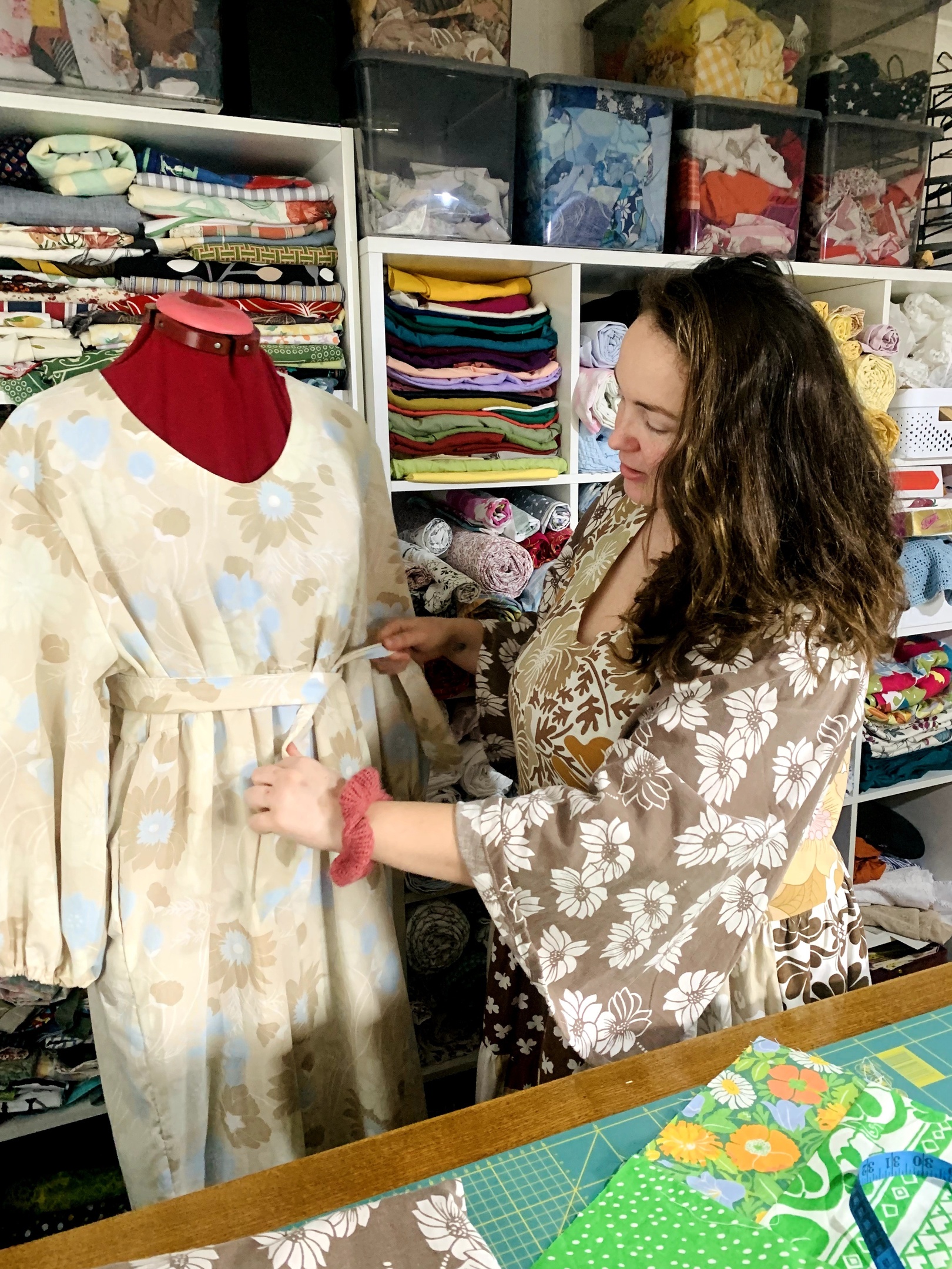 Skapar unika plagg och accessoarer av återbrukad textil.